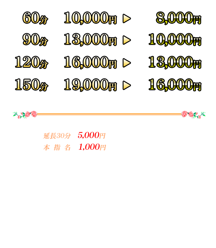 ※コーススタート後、キャンセルやチェンジ、早上がりなどに関しては一切返金できません。